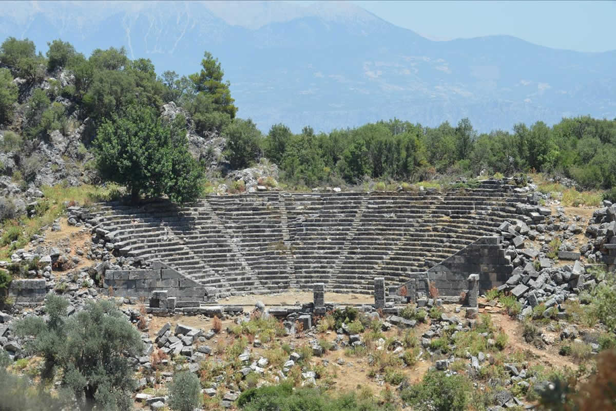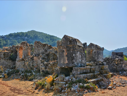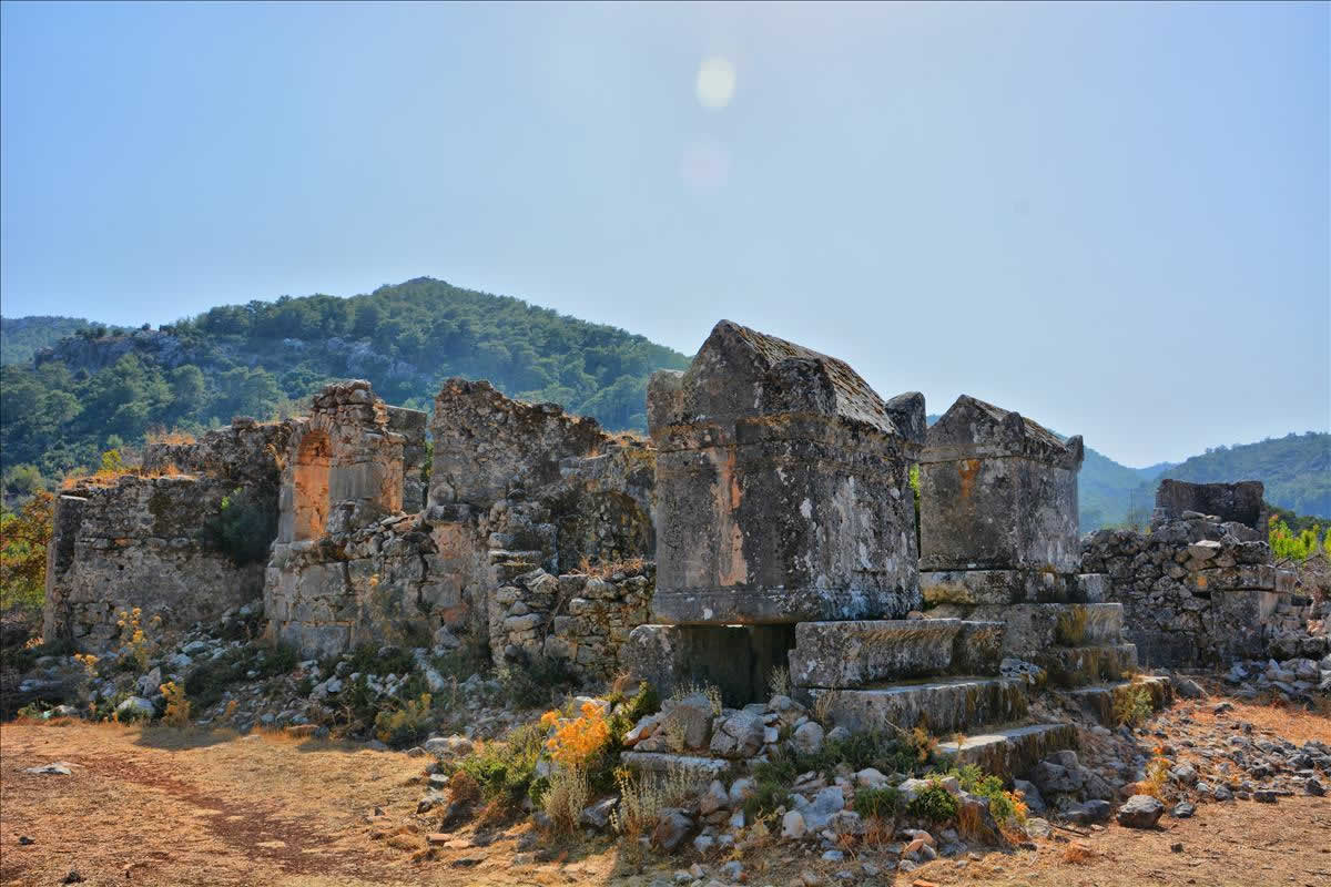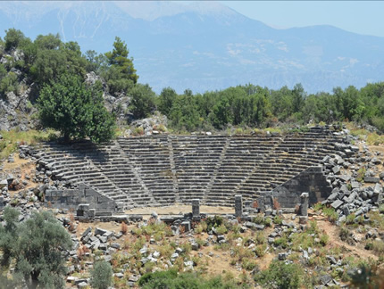 37Km. 1h. Sidyma was mentioned in the 1st century BC by Alexander Polyhistor, and later by Pliny the Elder, Stephanus of Byzantium, the Synecdemus, and the Notitiae Episcopatuum. Its extant remains are of the time of the Roman Empire, when it was an unimportant but flourishing city, and no Lycian inscriptions have been discovered there and there are no Lycian rock tombs, but its name seems to indicate an earlier origin. Above the present ruins, which lie in a valley, is a wall that may indicate the existence on the hill of a city of which no traces remain.