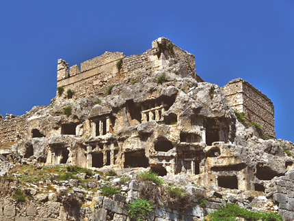 46km 55min. Tlos is an ancient ruined Lycian hilltop citadel near the resort town of Fethiye in the Mugla Province of southern Turkey, some 4 kilometres northwest of Saklikent Gorge. Tlos is believed to be one of the most important religious Lycian sites and settlement on the site is said to have begun more than 4,000 years ago.